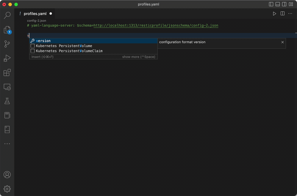 JSON, YAML and TOML configuration files can benefit from a JSON schema that describes the config structure depending on the selected restic and configuration file version.